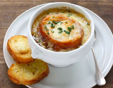 Répartir le fromage sur les tranches de pain et les faire gratiner au four.